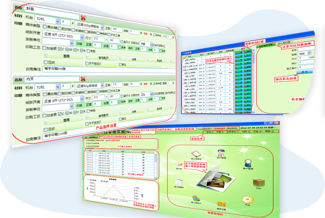 幫助印刷企業(yè)解決算價不準(zhǔn)、多個業(yè)務(wù)員算價不一致、印刷安排不智能的問題。靈活的算式公式編輯功能,支持階梯價、固定價、超尺寸價格等規(guī)則設(shè)置。包括材料管理、印刷單管理、機臺管理、客戶管理等功能。